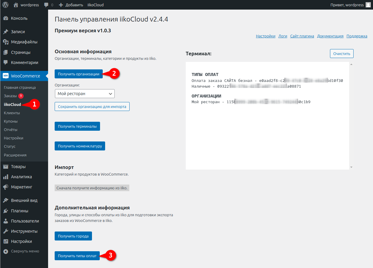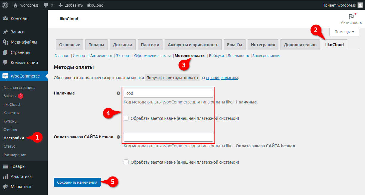 Названия методов оплаты WooCommerce и iiko могут отличаться, так как связь идёт по их кодам и ID.