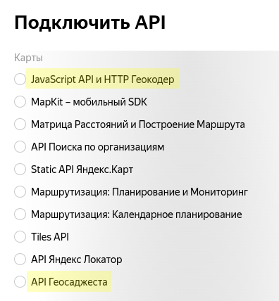 Для корректной работы карты понадобится два ключа -JavaScript API и HTTP ГеокодериAPI Геосаджеста:
