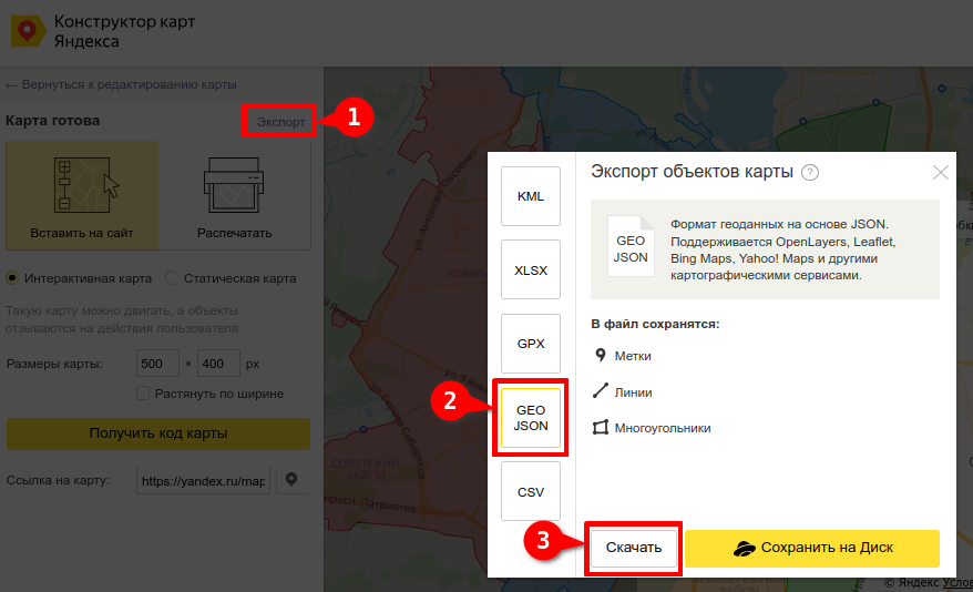 Экспорт Яндекс.Карты с зонами в формате geojson